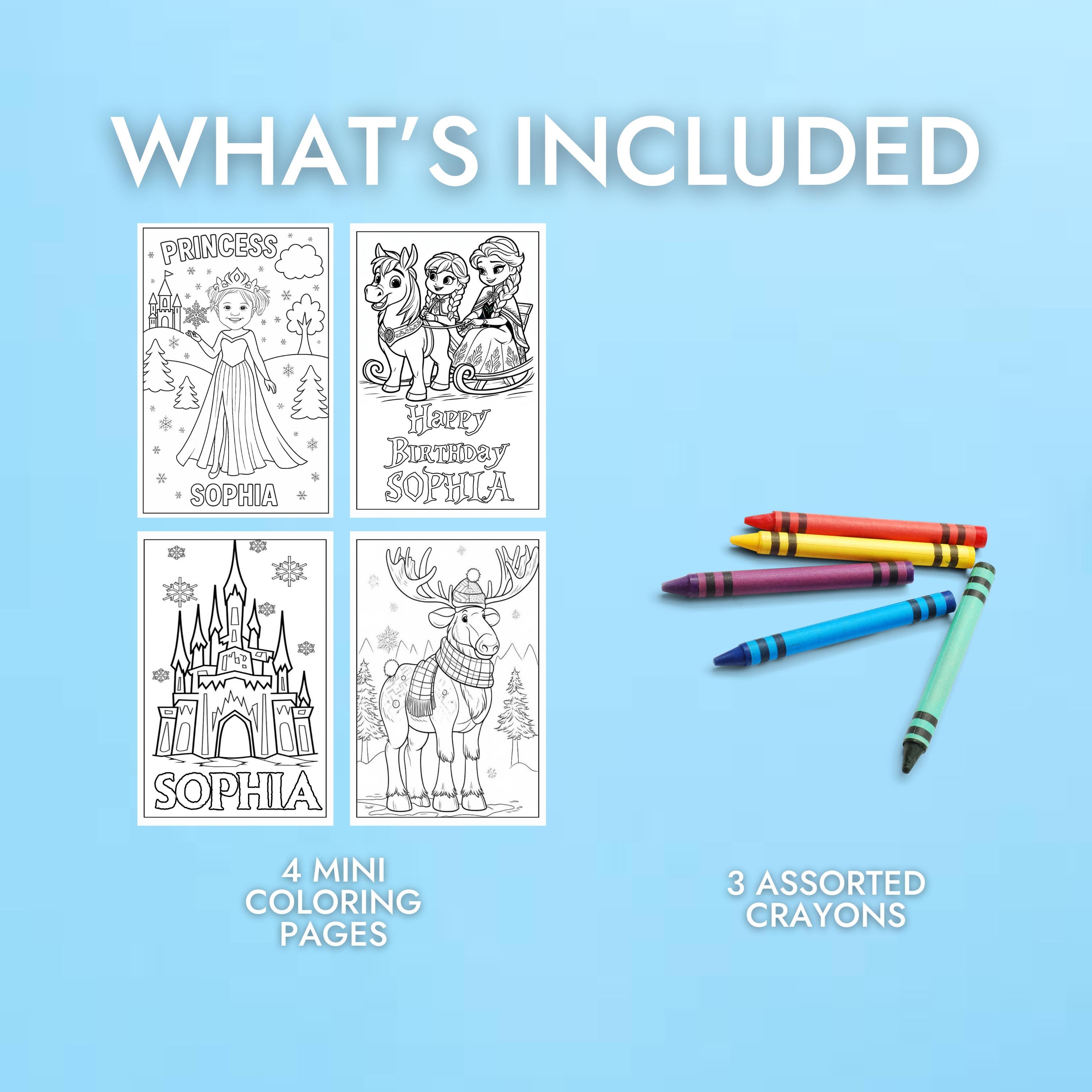 Bring the magic to life with these Princess-Themed Frozen Coloring Pages, perfect for birthdays and winter wonderland celebrations! Featuring adorable princesses, a snowman, and a reindeer, these custom pages make the cutest party favors or creative activity for kids.