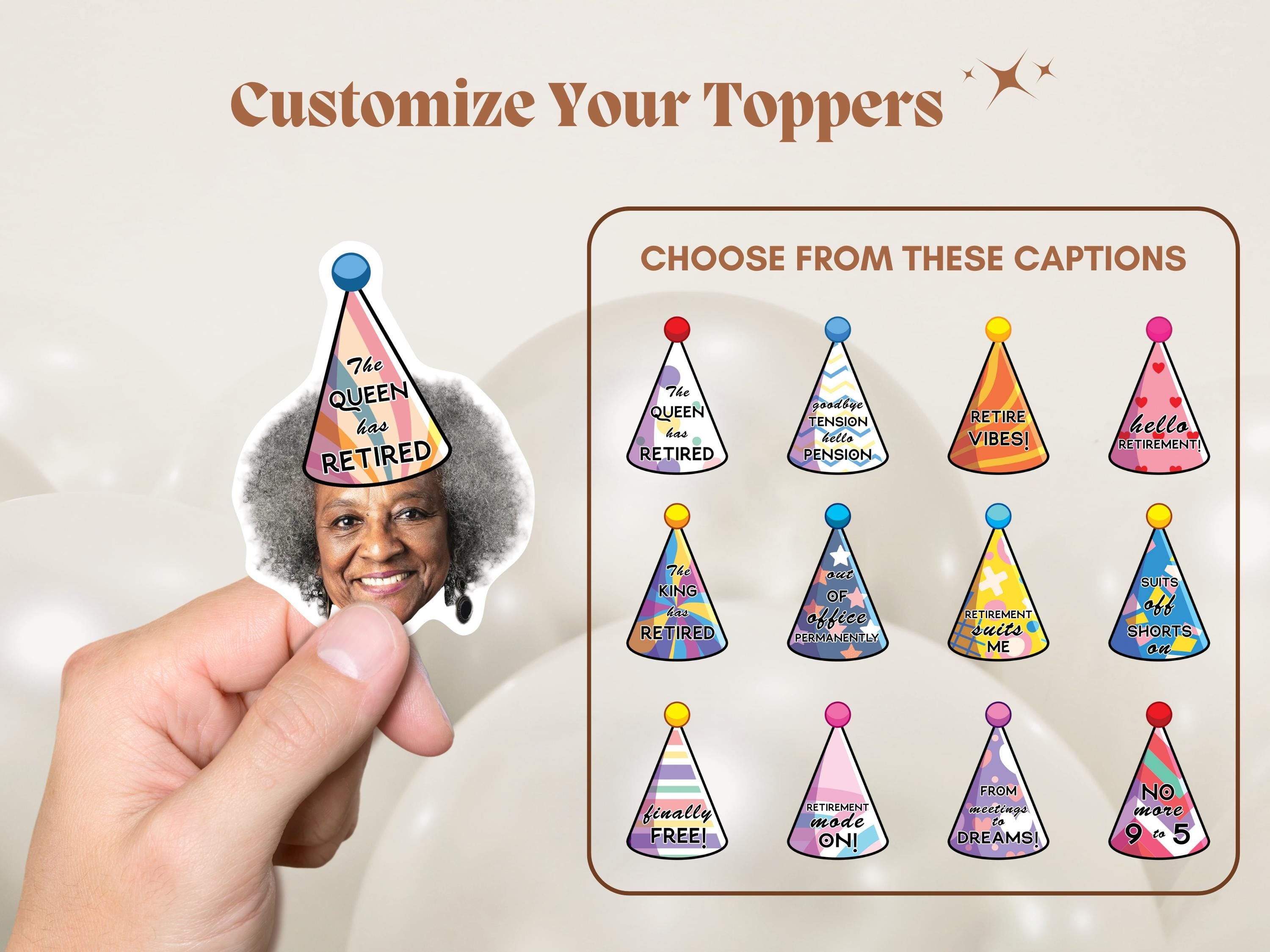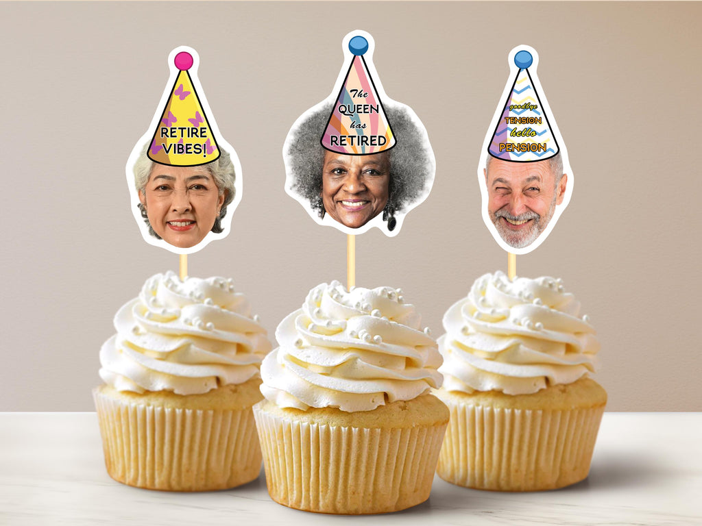 Celebrate the next chapter with our Retirement Cupcake Toppers! These custom toppers feature a personalized photo, adding a fun and memorable touch to any retirement party.