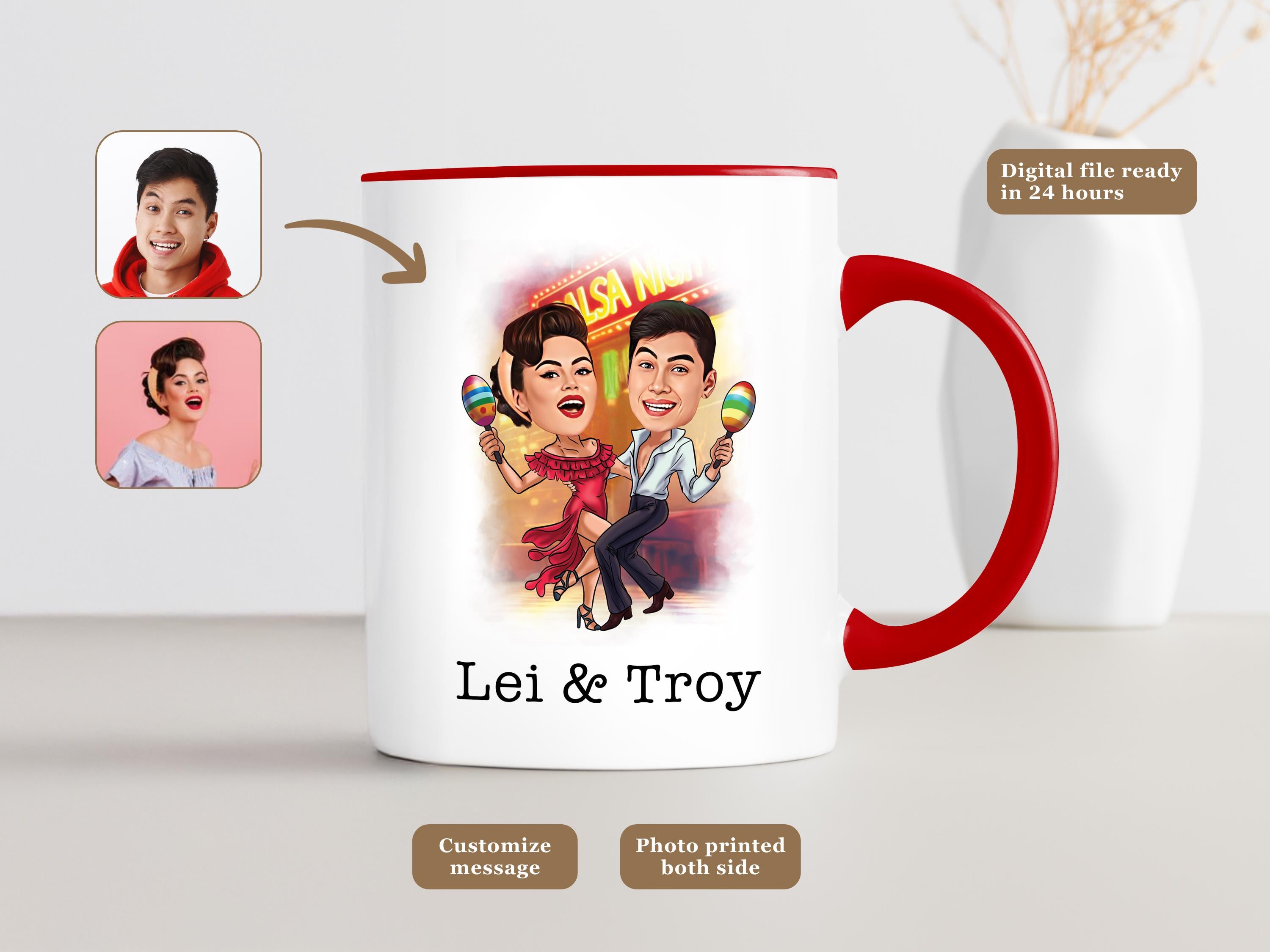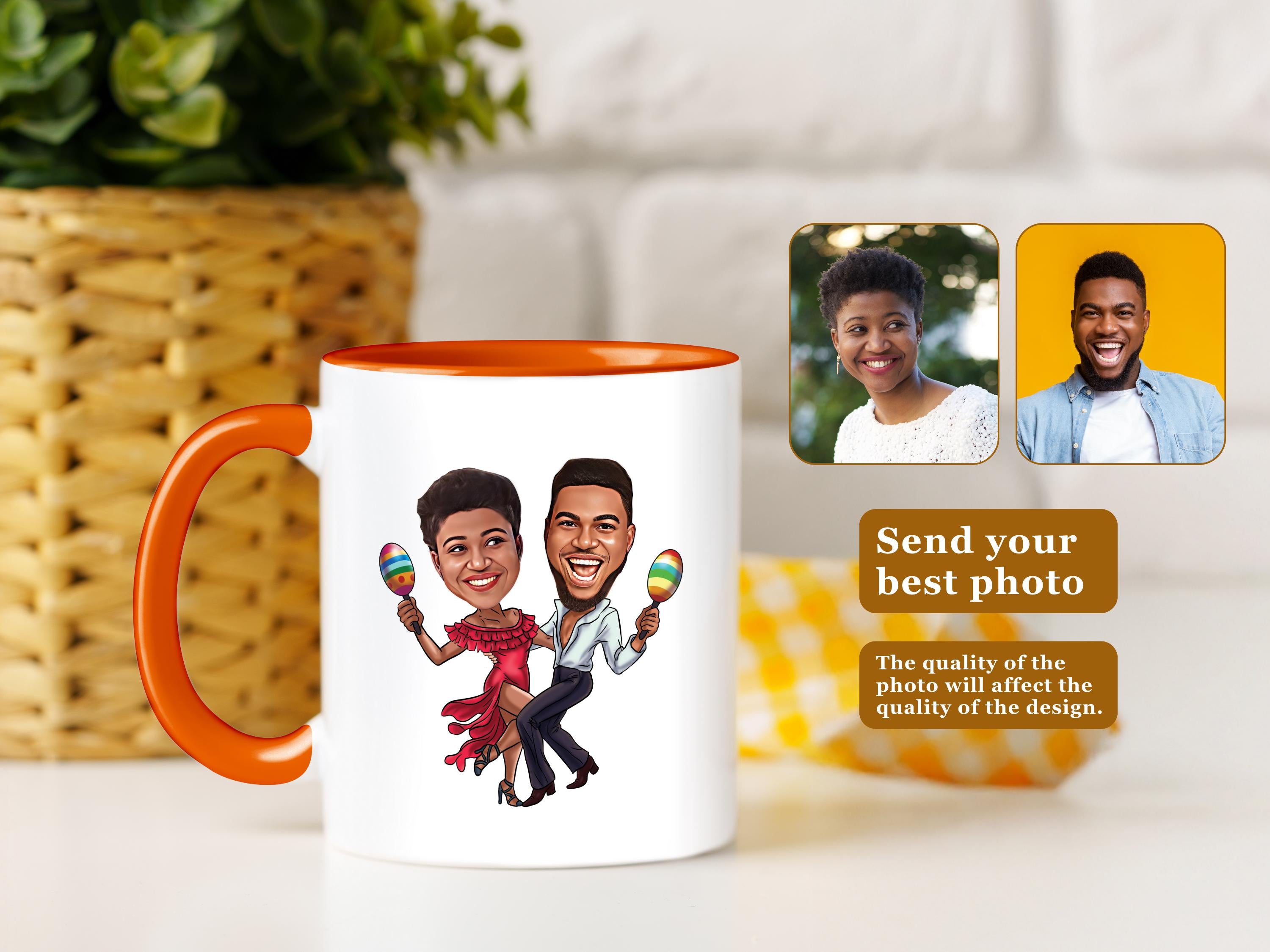 Turn your favorite dancing duo into a custom salsa cartoon on a vibrant mug full of movement, fun, and personality! This personalized caricature mug is perfect for salsa lovers, dance partners, or couples who love to move. Material: ✅ A custom caricature mug featuring a unique basketball cartoon portrait, drawn from a photo you provide. ✅ Two mug size options: 11oz or 15oz ✅ Your caricature will be printed on the mug, making it a fun and functional gift that will surely be a slam dunk!