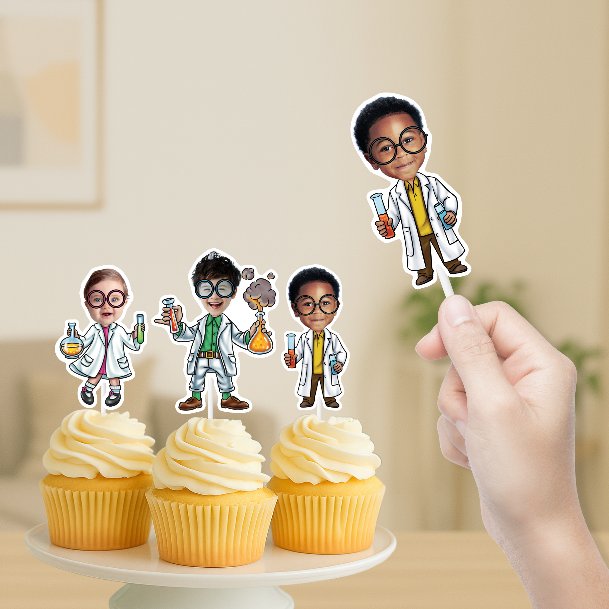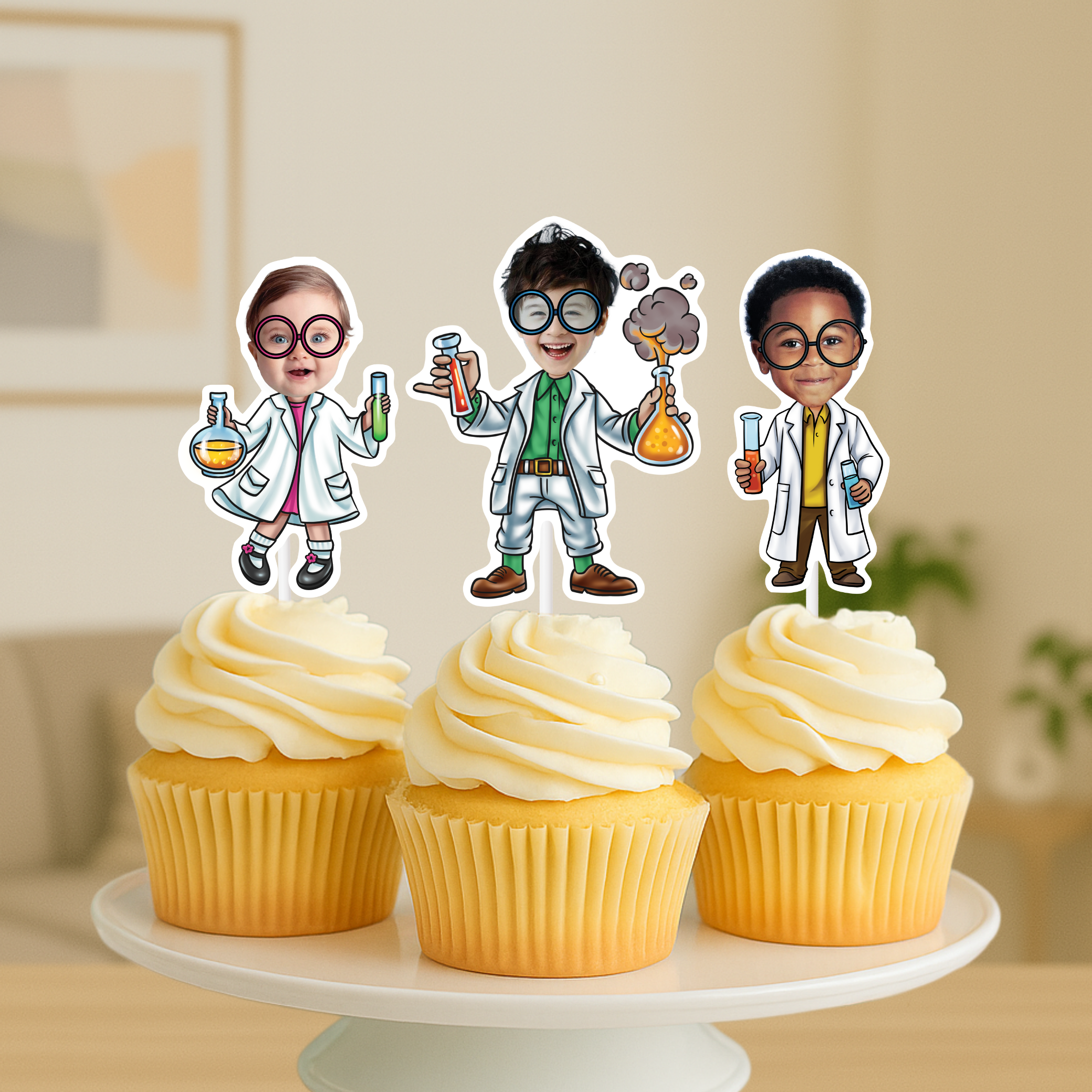 Scientist Personalized Face Cupcake Toppers