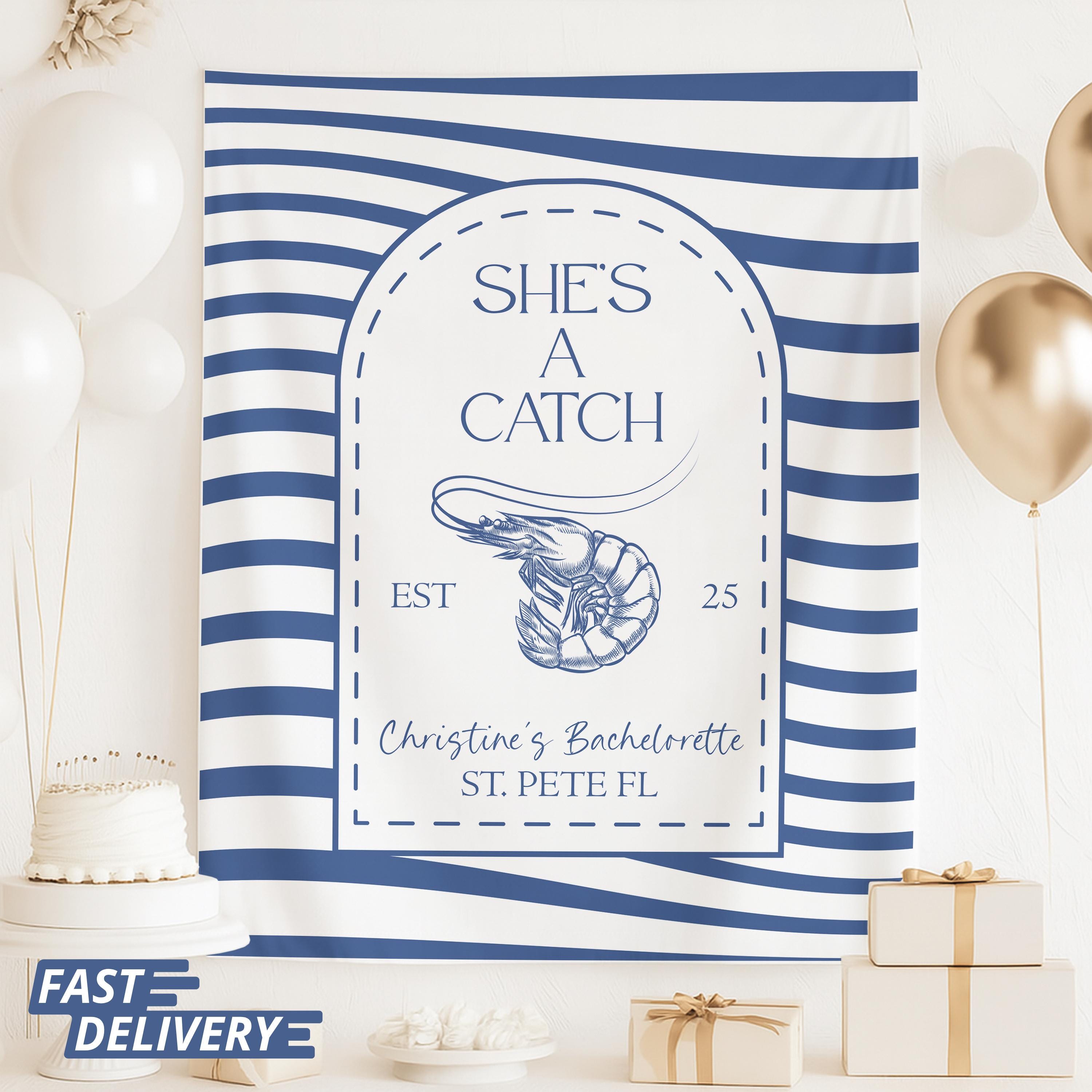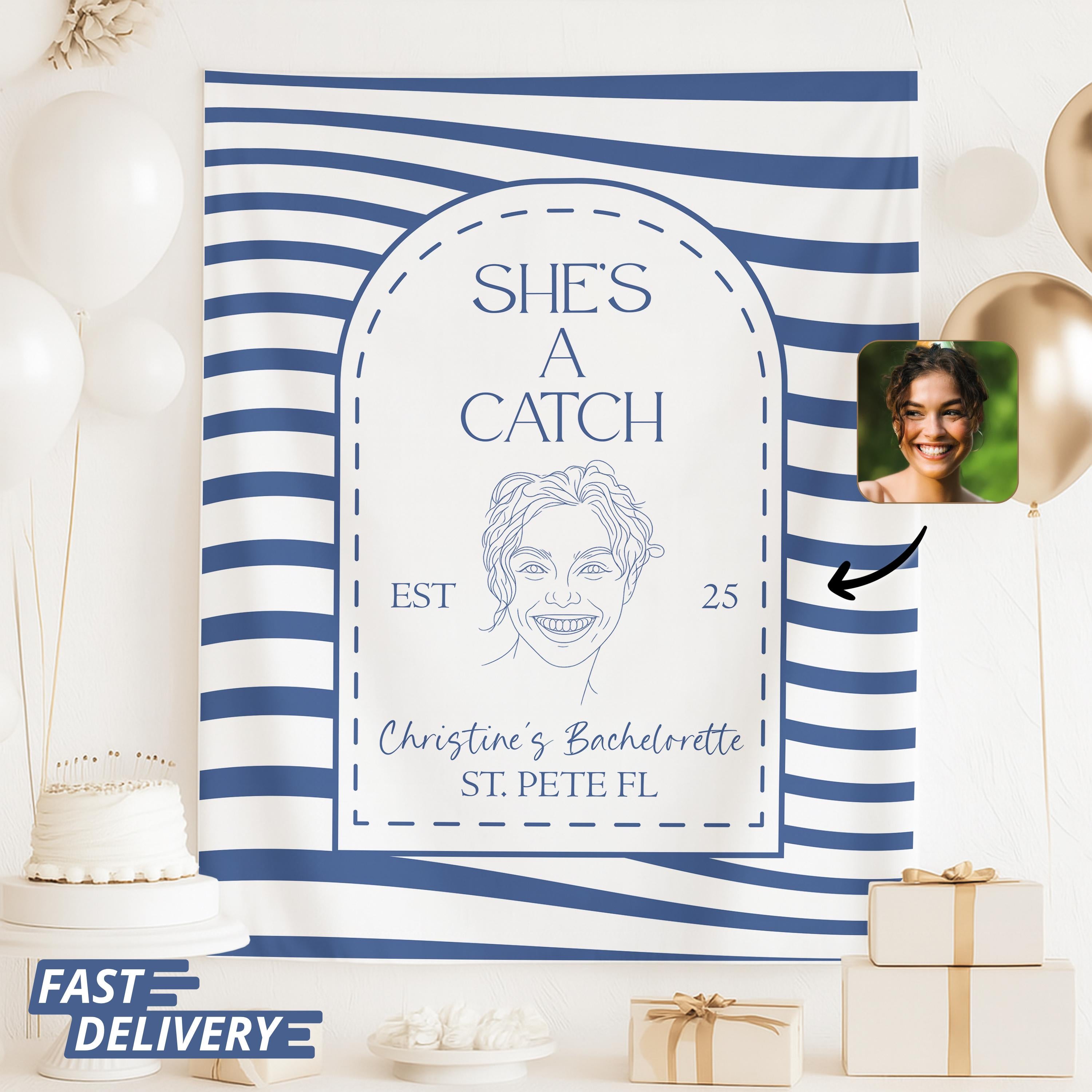 She's A Catch Tapestry Bachelorette Party Decor Custom