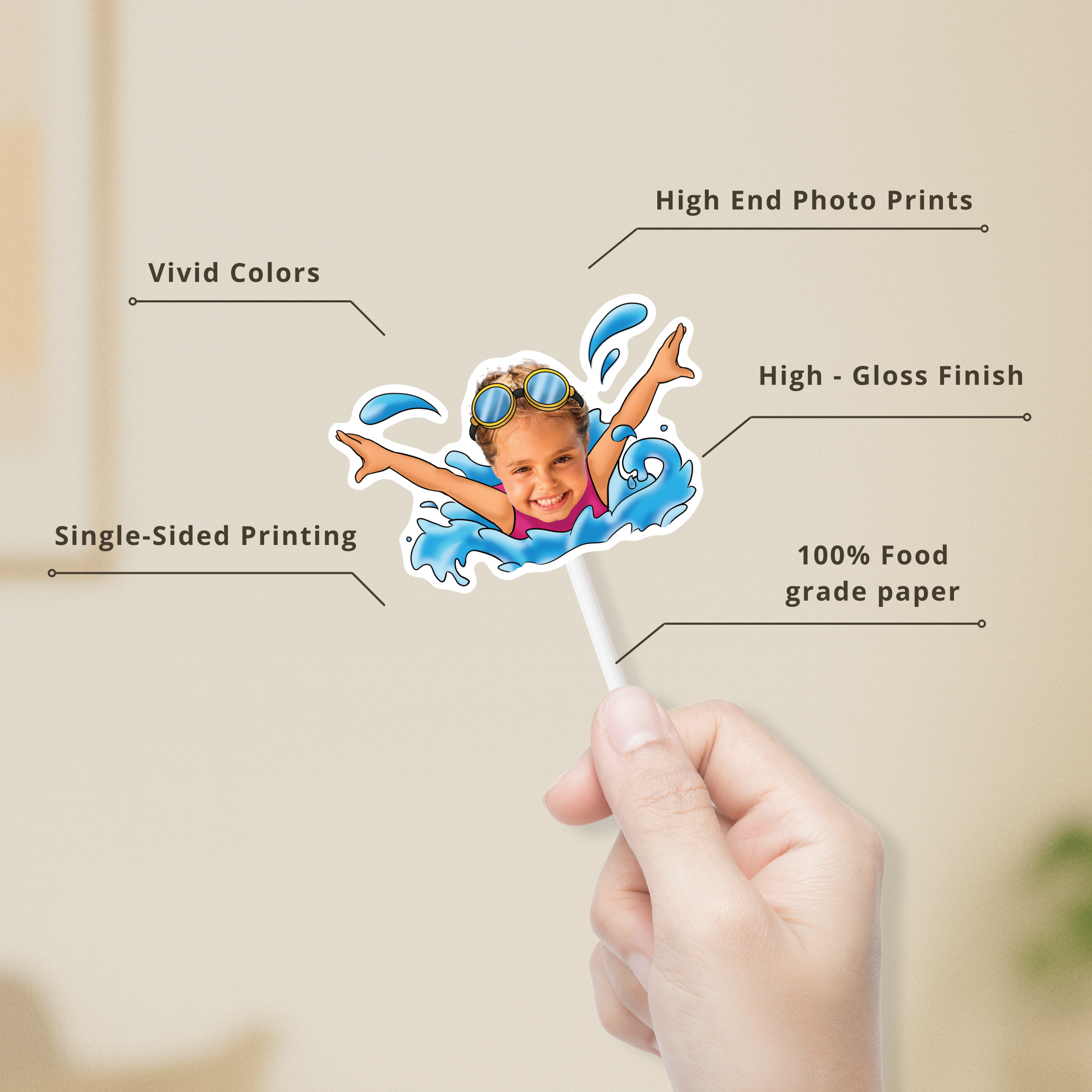 Make a splash at your celebration with our Swimmer Cupcake Toppers! Perfect for a swimming-themed party, graduation, or even a retirement celebration for a dedicated swimmer, these toppers add a personalized and aquatic touch to your cupcakes.