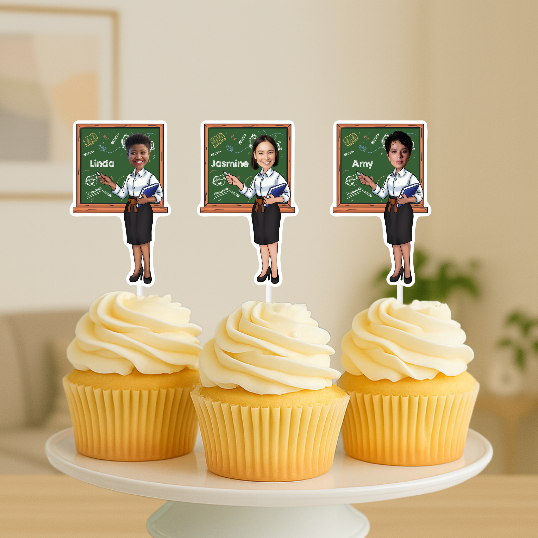 Celebrate the educators in your life with Teacher Personalized Cupcake Toppers! These custom toppers are perfect for adding a thoughtful touch to your Teacher Appreciation party, featuring a personalized face design that honors your favorite teacher.