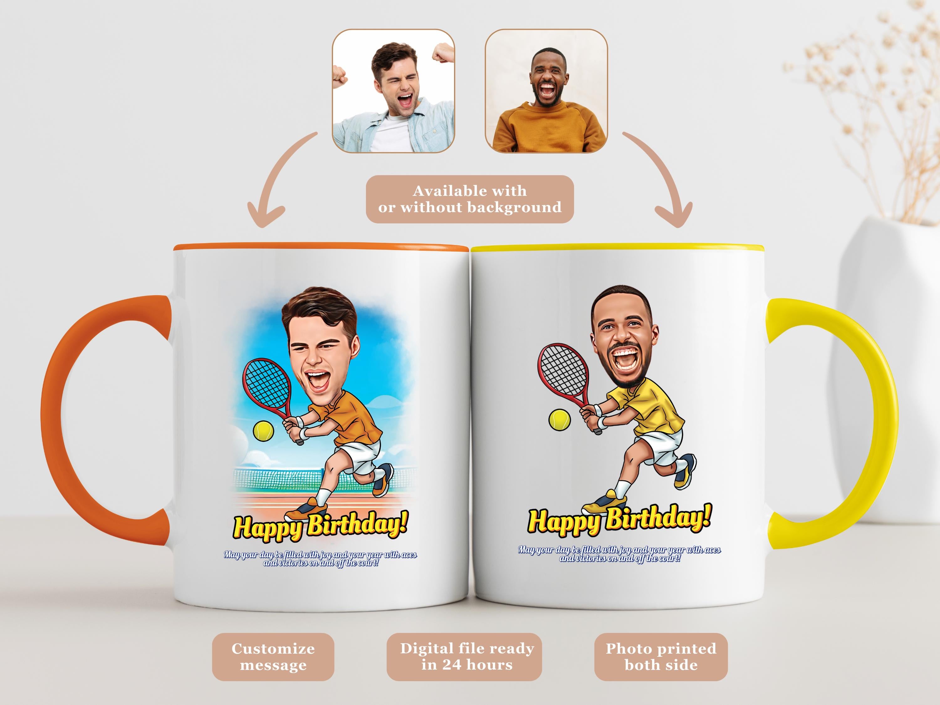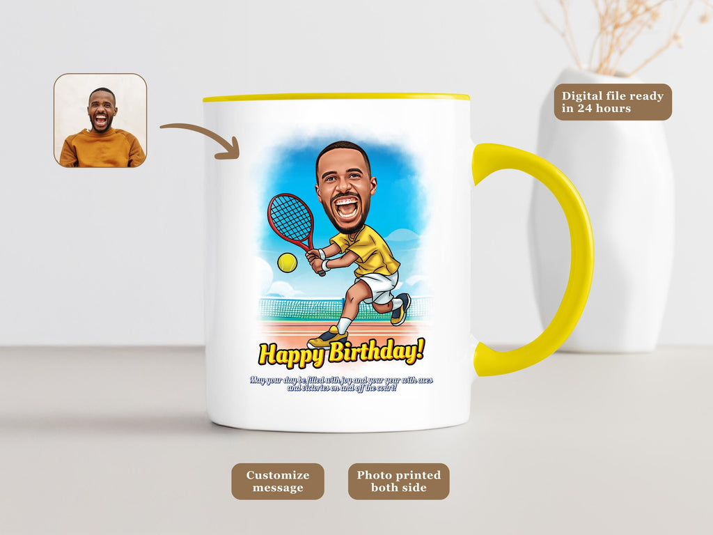 Serve up some serious style with this Custom Tennis Mug featuring a cartoon-style male tennis player and your personalized message! Whether its for a coach, teammate, tennis-loving dad, or friend, this unique mug is a perfect gift for anyone who lives for the game.