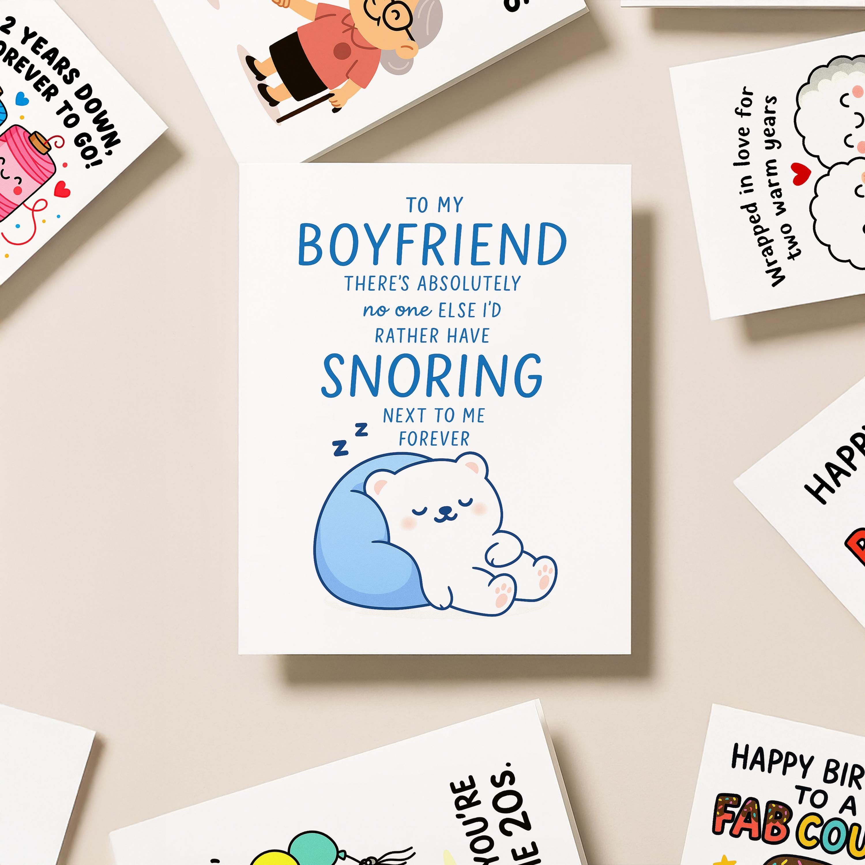Looking for the perfect card to make your boyfriend smile? This customizable greeting card is a sweet (and funny!) way to celebrate your relationship. Material: A2 self-seal envelopes Heavyweight Folded Cardstock 100% acid-free Size: 4.25" x 5.5"