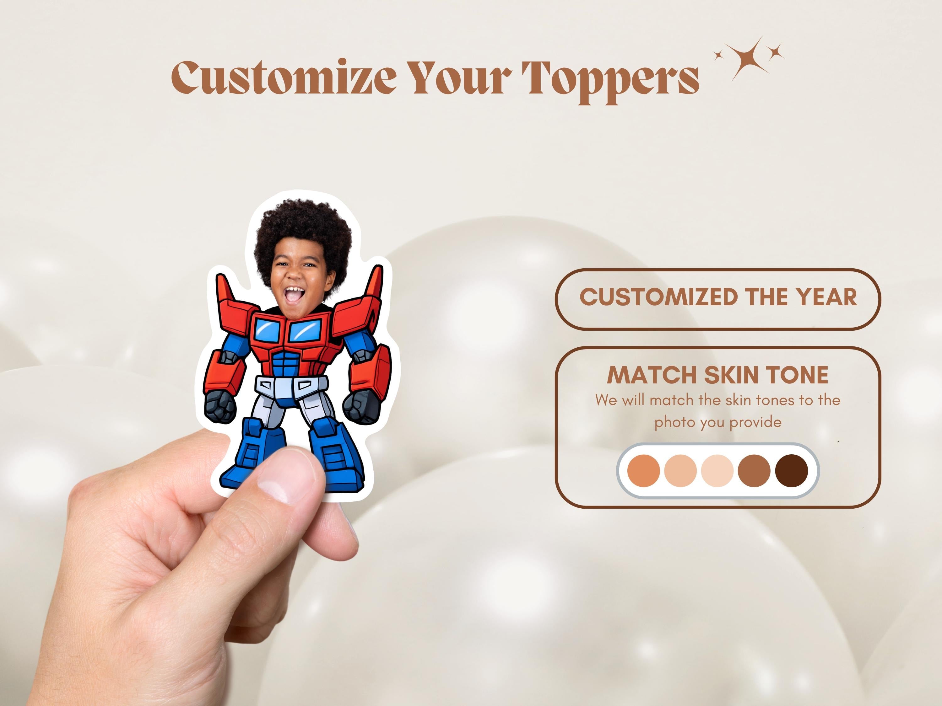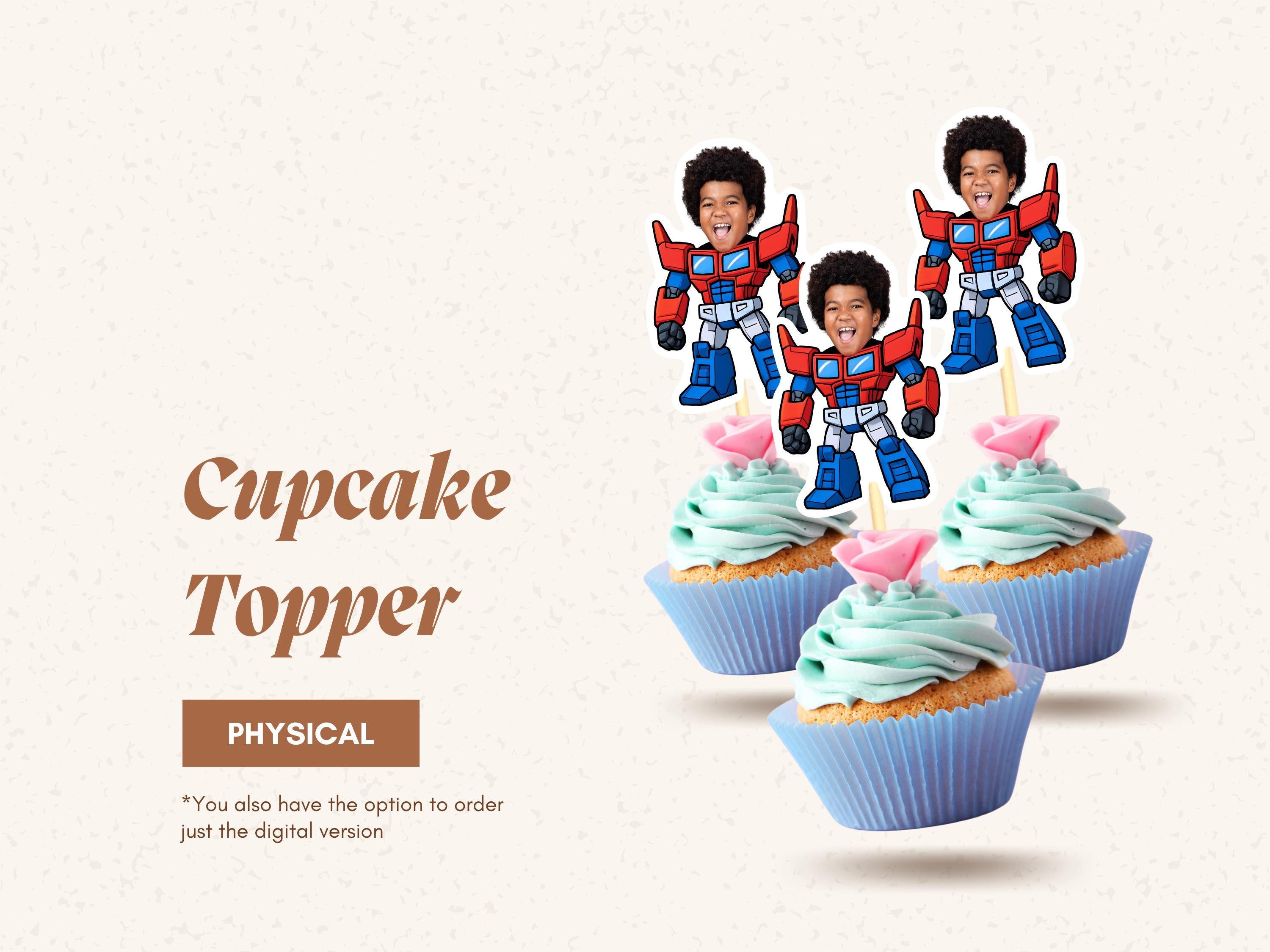 Transformers Cupcake Toppers Personalized Robot Birthday Decor for Boys and Girls Autobots Party Theme Custom Face for Robot Lovers Kids