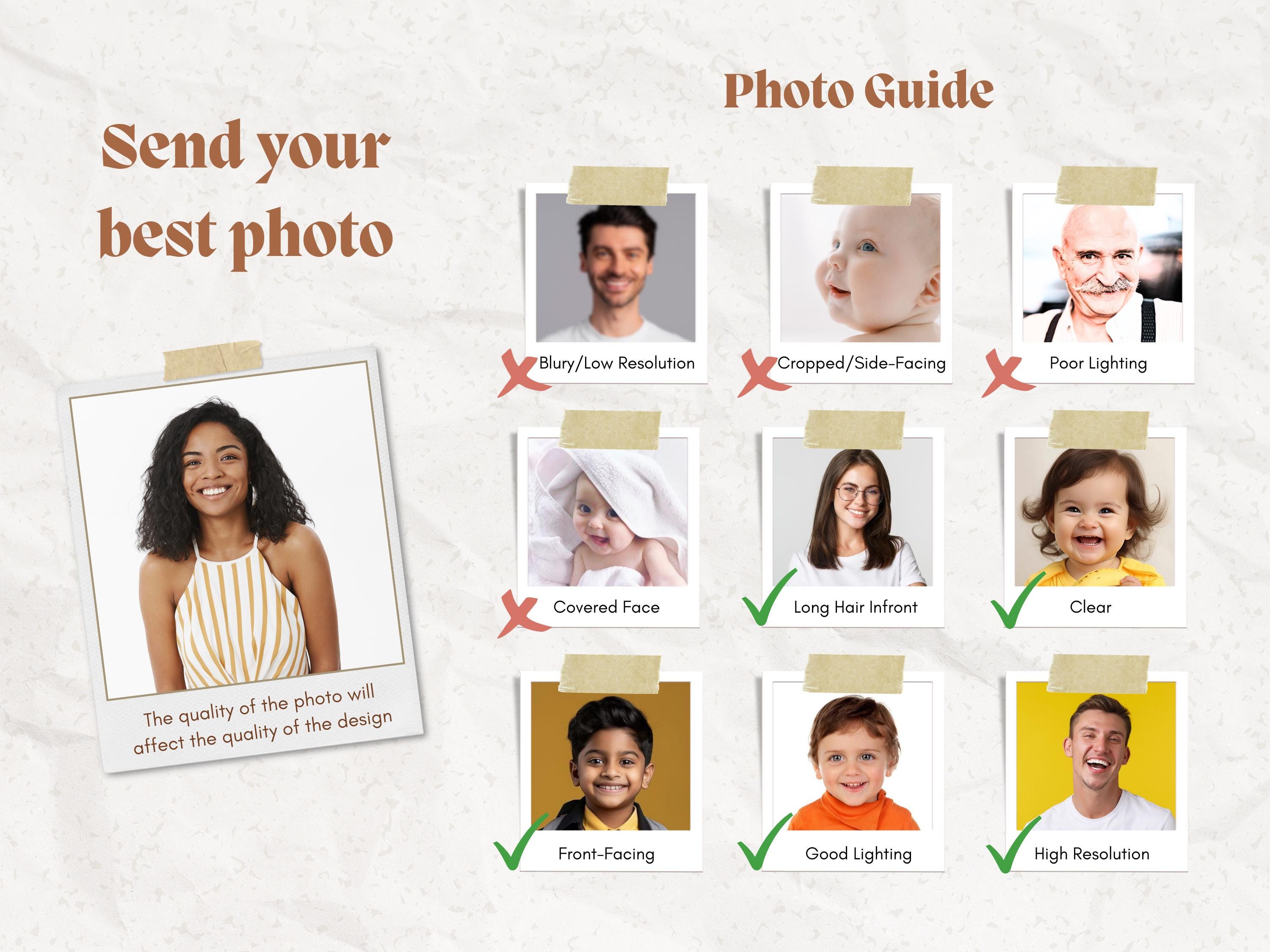 ⚠️ Photo quality directly impacts the final design. For best results, use clear, straight-facing, well-lit images.