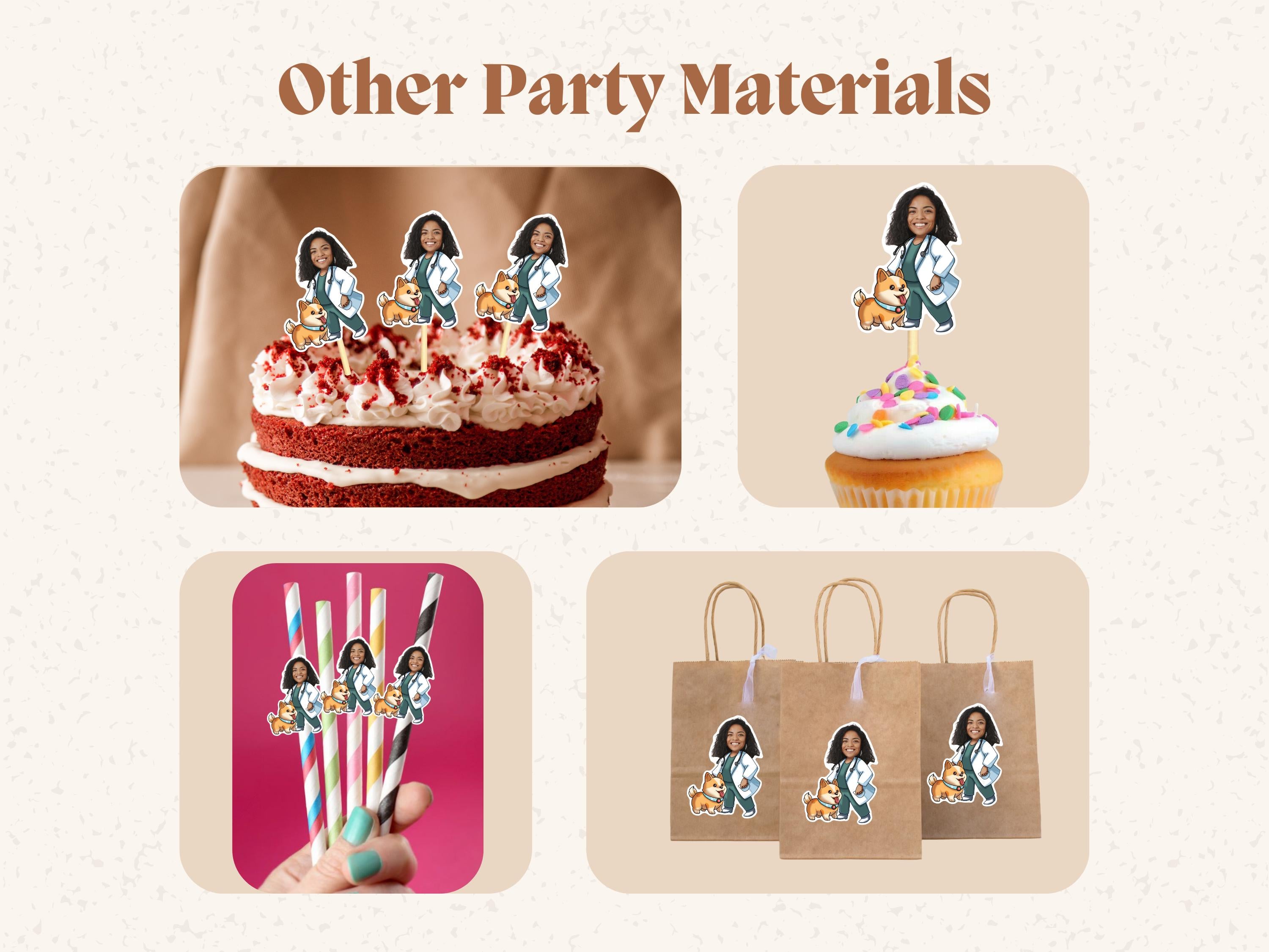 Add a purr-sonal touch to your party with our Veterinarian Dog and Cat Personalized Cupcake Toppers! Featuring custom faces paired with adorable cat-themed designs, these toppers are perfect for any cat and dog lovers birthday celebration.