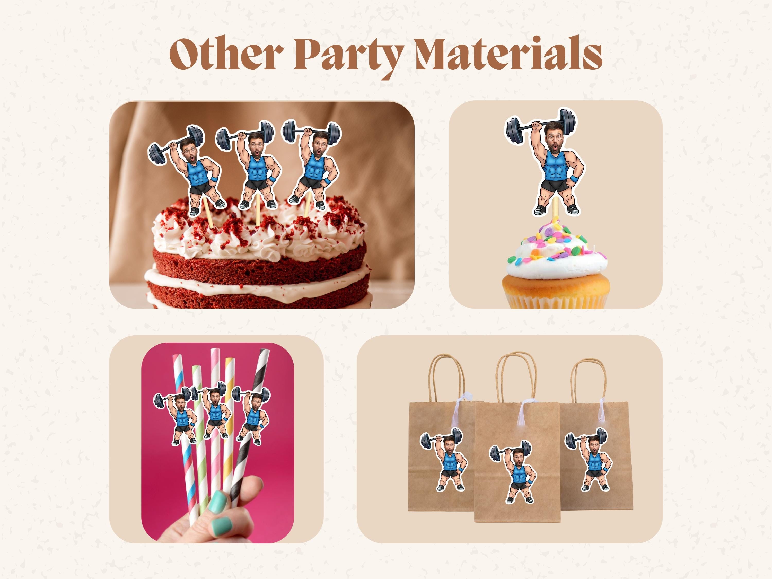 Pump up the fun with our Weightlifter Cupcake Toppers! These Workout Photo Toppers are perfect for a gym-themed birthday party, featuring personalized photos to highlight the guest of honor.