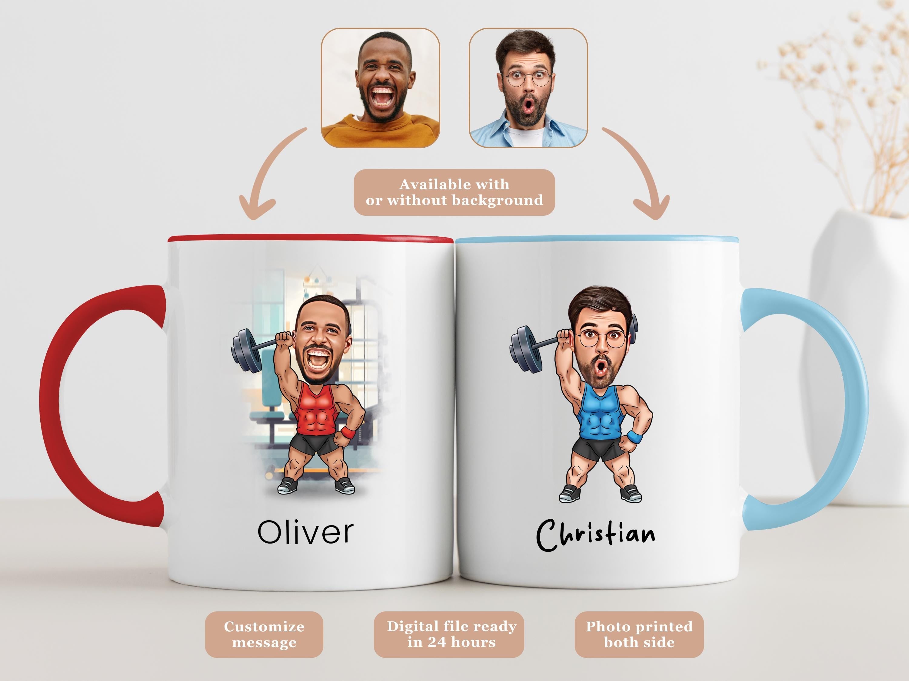 Workout Caricature Mug Personalized Bodybuilder Cup Unique Gym