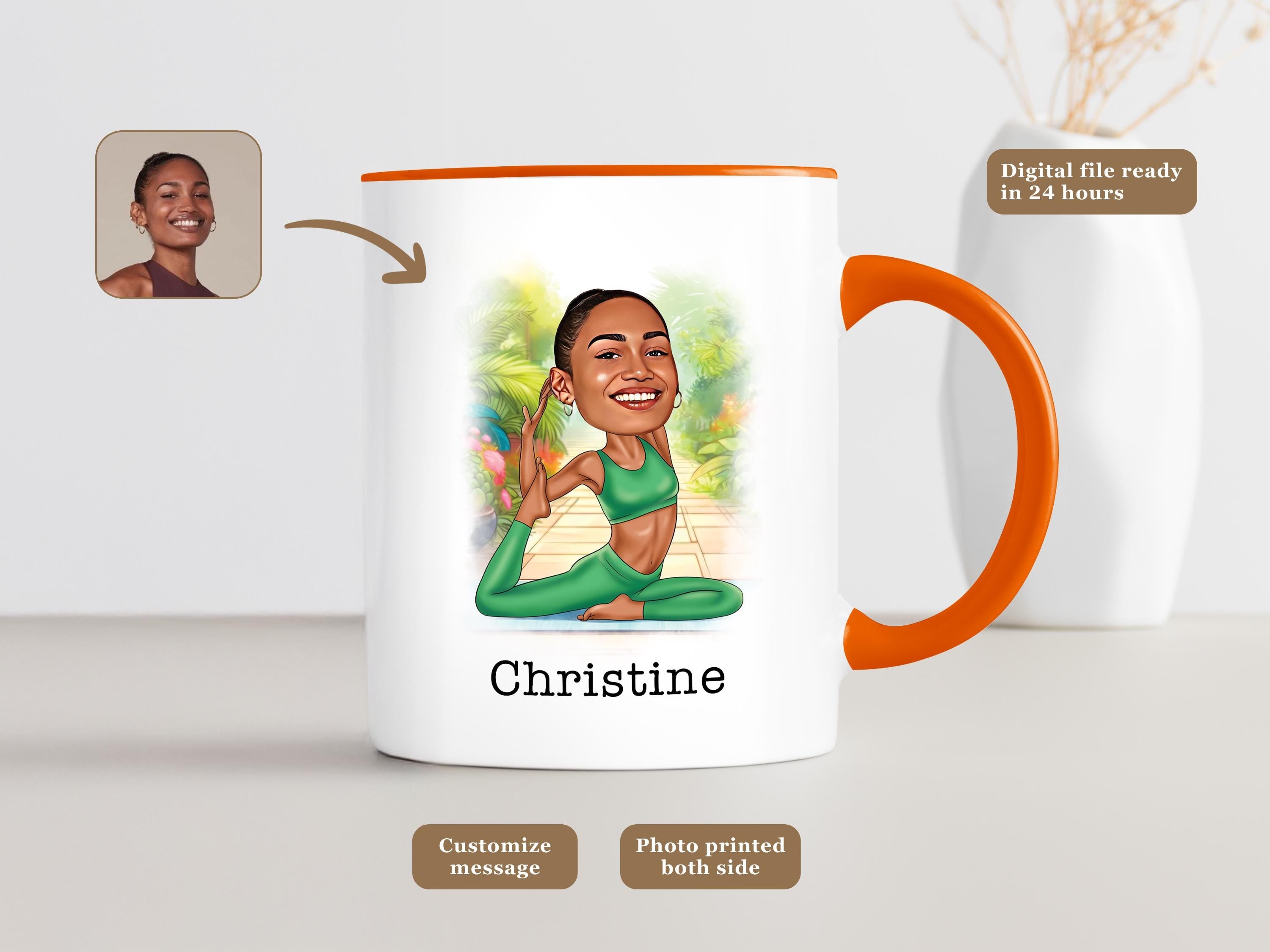 Celebrate your favorite yoga instructor or fitness enthusiast with this Custom Yoga Mug featuring a fun, personalized caricature! Whether its for early morning meditations or post-class coffee, this mug adds a playful and unique touch to their daily routine.